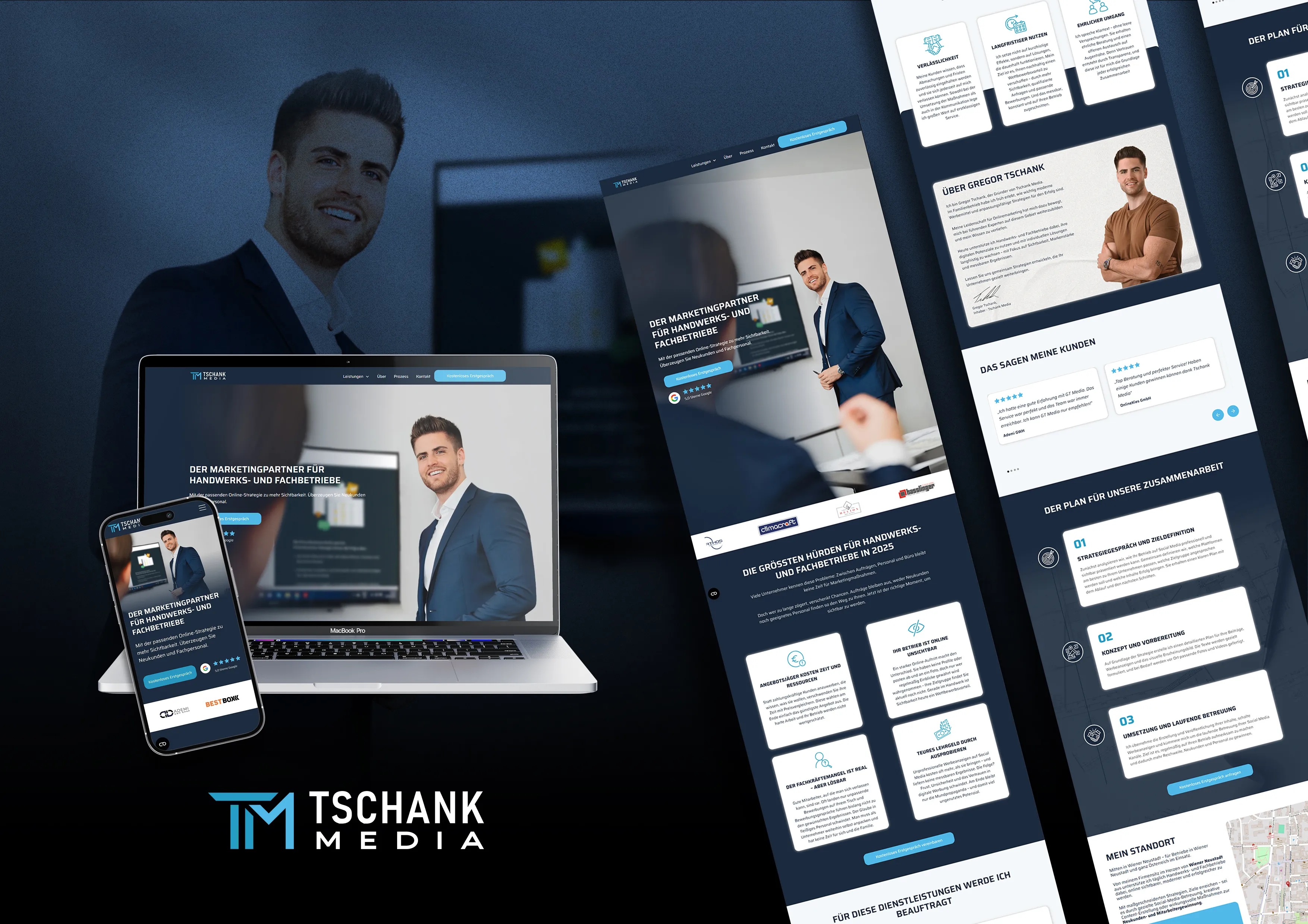 Doch es geht nicht nur um Ästhetik. Die Gestaltung folgt einer klaren Strategie: Besucher emotional abholen, zum Weiterlesen animieren und gezielt zur Anfrage führen. Denn am Ende bringt dir keine Website etwas, wenn sie nur gut aussieht, aber keine Kunden gewinnt.