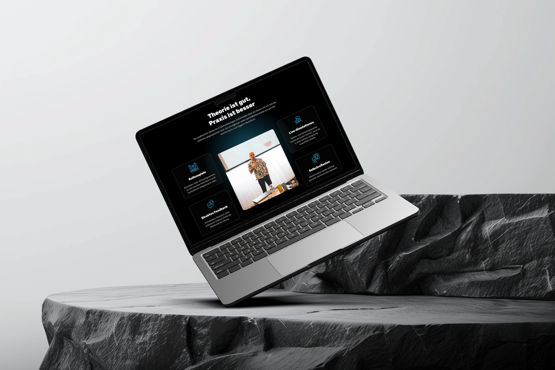 In nur 3 Wochen wurde eine vollständige Webflow-Website entwickelt und live gestellt. Die Seite präsentiert das Trainingsangebot klar strukturiert – mit den 7 Schlüsselkompetenzen, den verschiedenen Trainingsformaten und den messbaren Ergebnissen aus über 10 Jahren Praxis.